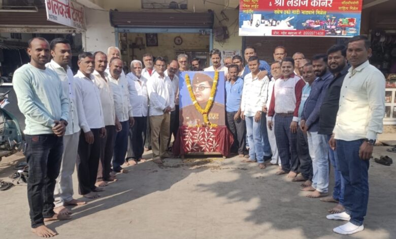 प्रतिनिधी एरंडोल – शहरातील छत्रपती शिवाजी महाराज व्यापारी संकुलयेथे प्रवीण मेन्स पार्लर जवळ नेताजी सुभाष चंद्र बोस यांची जयंती मोठ्या उत्साहात साजरी करण्यात आले या कार्यक्रमाप्रसंगी नेताजींच्या प्रतिमेचे पुजन रॉलय  ट्रेलर यांनी केले तर पुष्पहार अर्पण कृष्णा महाजन यांनी केले तर श्रीफळ निळकंठ अहिरे यांनी अर्पण केले या कार्यक्रमा  प्रसंगी