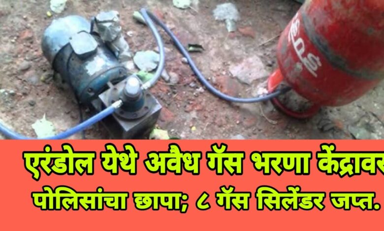 एरंडोल येथे अवैध गॅस भरणा केंद्रावर पोलिसांचा छापा; ८ गॅस सिलेंडर जप्त.