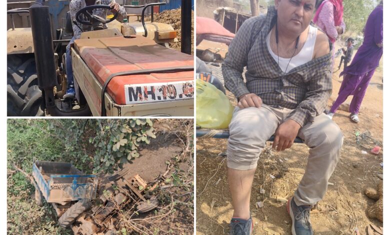 पायाला व खांद्याला गंभीर दुखापत झाली.tractor बंद पडल्यामुळे सुदैवाने